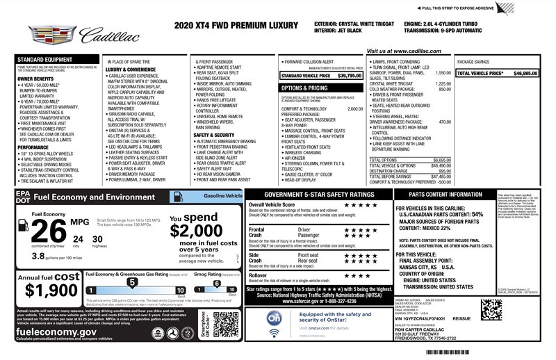 2020 Cadillac XT4 Premium Luxury 4-Door Wagon