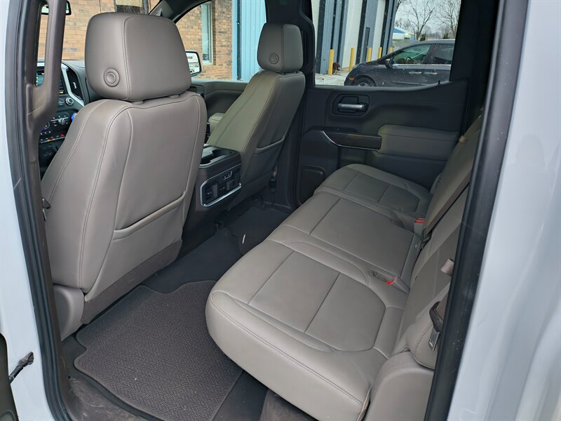 Inside, the Sierra 1500 SLT offers a spacious and well-appointed cabin, designed with both functionality and comfort in mind. The seating is upholstered in high-quality leather, providing a premium feel for both the driver and passengers. The front seats are power-adjustable, ensuring optimal comfort during long drives.
