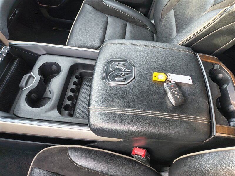 The Laramie is fitted from the factory with a host of convenience features: remote keyless entry with push-button start, remote start system (on many factory configurations), dual-zone automatic climate control, power windows and locks, and a tilt-and-telescoping steering column. Tow-friendly features include a tow/haul transmission mode, integrated trailer-sway control and wiring harness provisions; an integrated trailer brake controller and heavy-duty towing equipment are factory options or included depending on the build. For organization and cargo management, the cabin offers multiple cupholders, under-seat storage and a large lockable center bin.